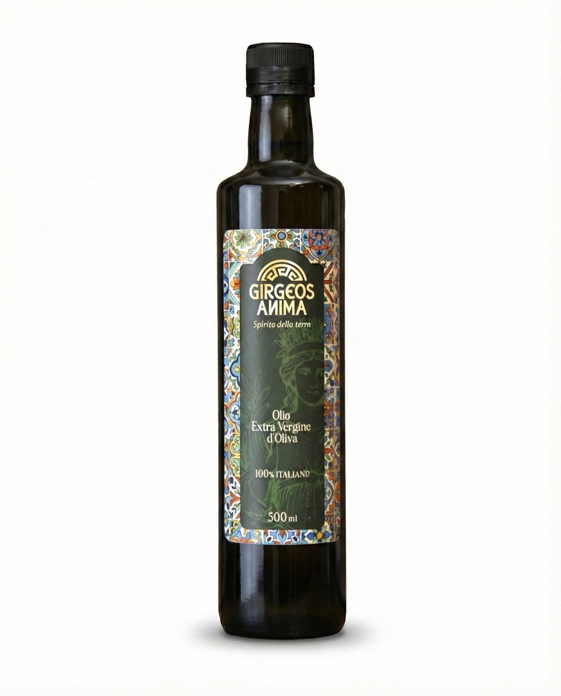 500 ml: L’eleganza in tavola. Bottiglia in vetro scuro con etichetta artistica, ideale per l’uso quotidiano o come regalo di grande pregio.