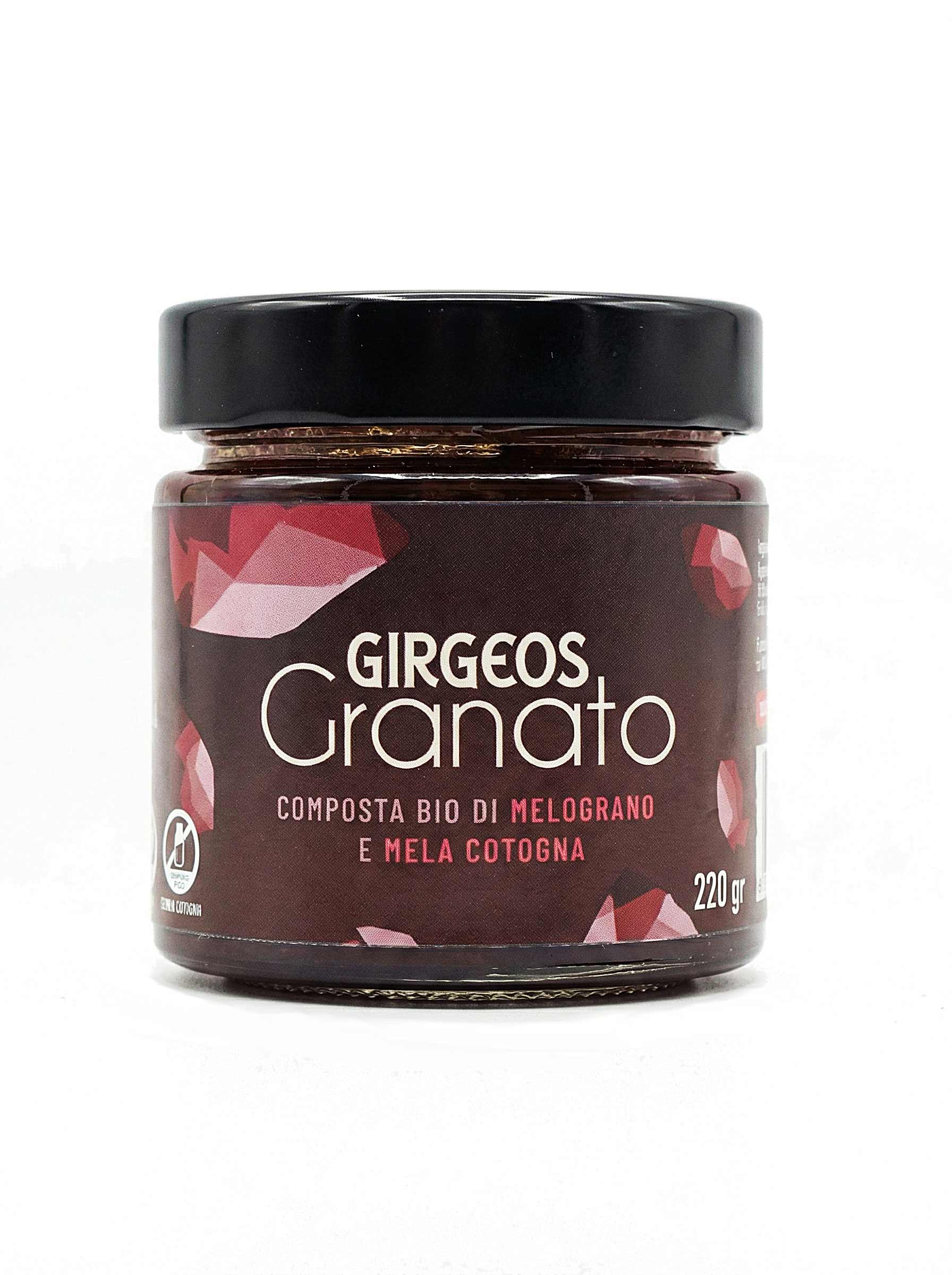 Girgeos Granato è molto più di una confettura: è un concentrato di natura dal colore rubino profondo. Nasce dall’unione biologica tra il succo di melograno (50%) e la polpa aromatica della mela cotogna (20%).